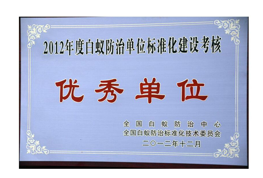 • 2012年度白蟻防治單位標準化建設考核優秀單位